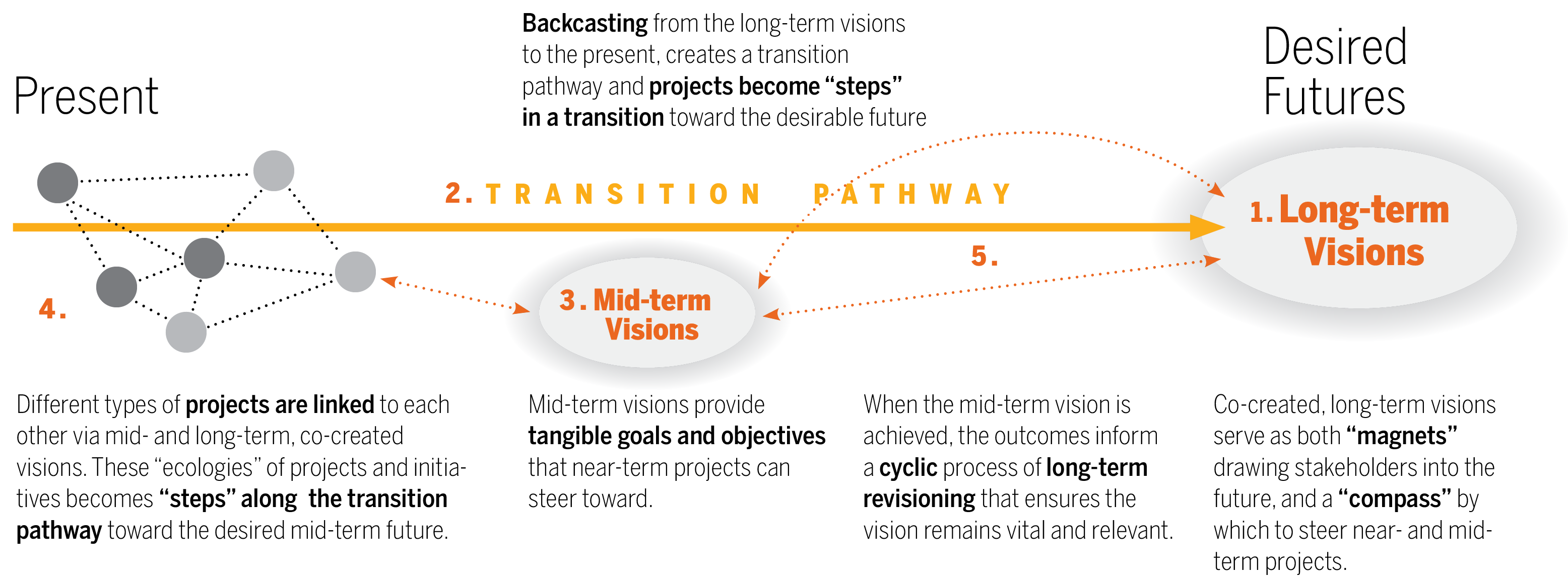 In this class we will discuss in detail some of these approaches to alternative economies, the ways in which the dominant for-profit paradigm impedes the ability of societies to transition to more sustainable, place-based lifestyles, and how transition designers integrate these initiatives and proposals into both long term future visions and present systems interventions. into both long term future visions and present day systems interventions.